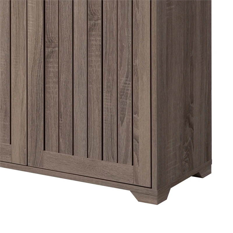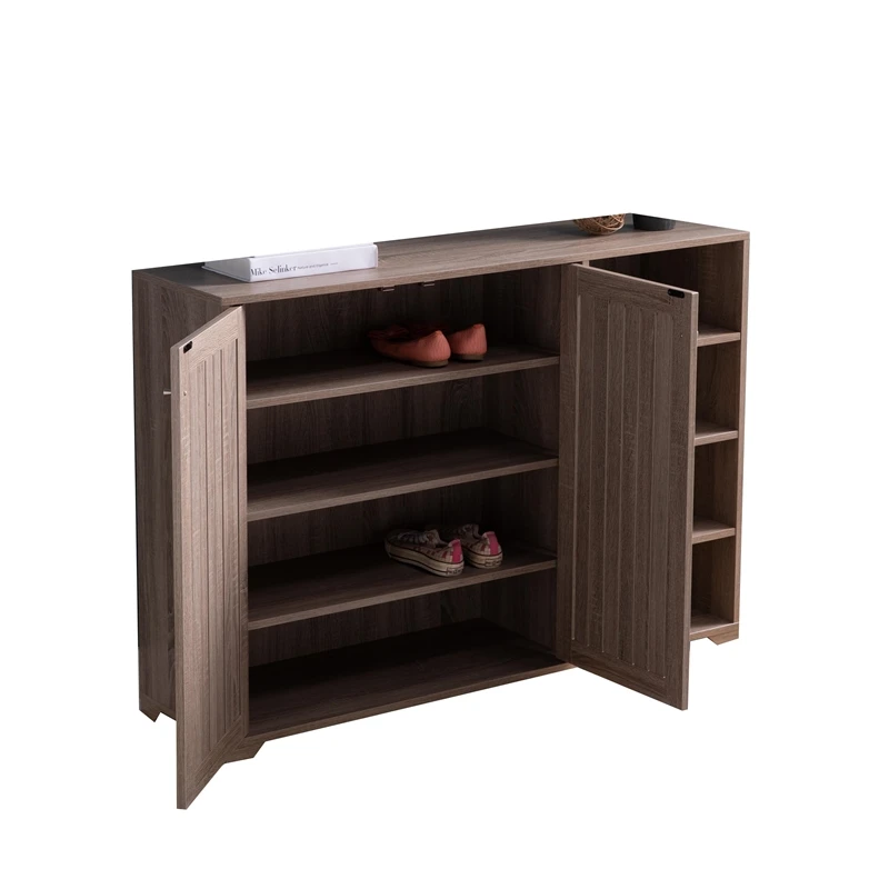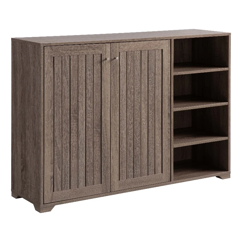 Bring home a contemporary accent piece that brims with sophistication and style with this gorgeously crafted and artisanally designed double door cabinet console. Perfect for any modern entryway, this piece contains a roomy cabinet, four open shelves, and a spacious surface area that is particularly perfect for keeping keys, wallets, and everyday out the door essentials.