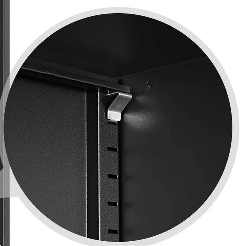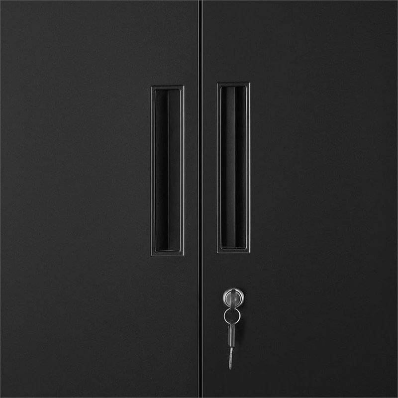 Expand your storage space excellently with this spacious storage cabinet. Made of a durable steel frame in powder coated black finish, it features four adjustable shelves to keep most of your office or home essentials out of sight while the sleek doors with lock handles allow safe, private storage, making it a must to have furniture piece in your home or workplace.