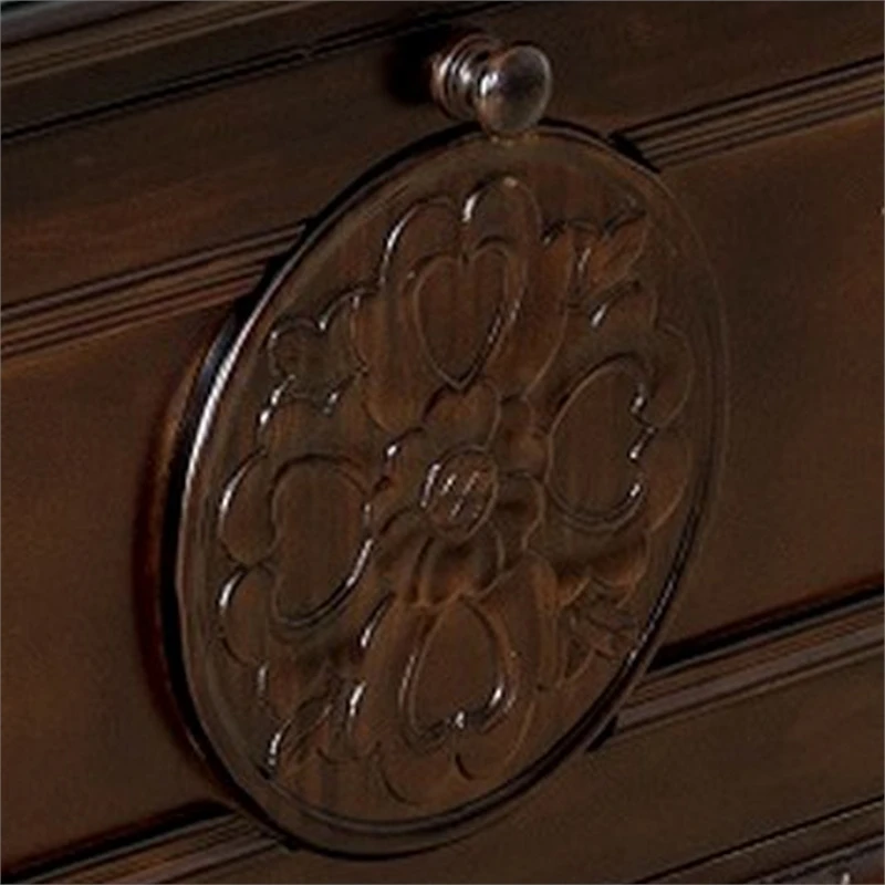 Quality craftsmanship meets exquisite scrolled details with this Accent Chest. Incorporated with floral carved design and drop down door storage, it is constructed sturdily from birchwood frame for prolonged durability.