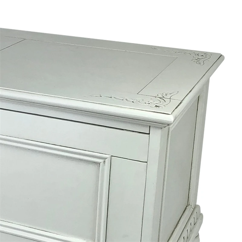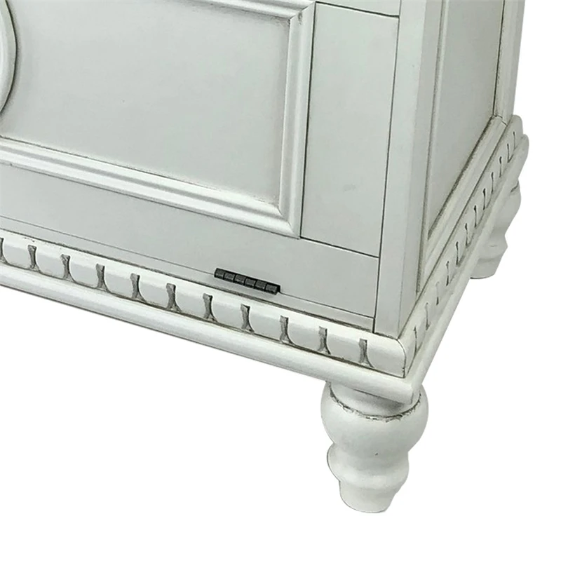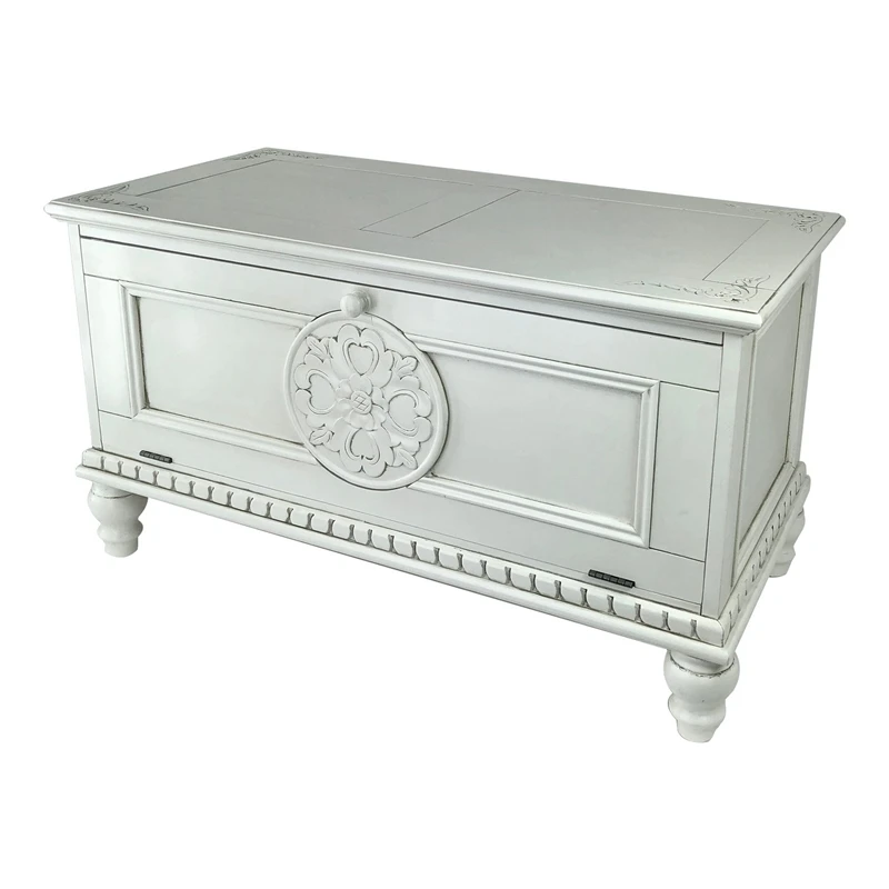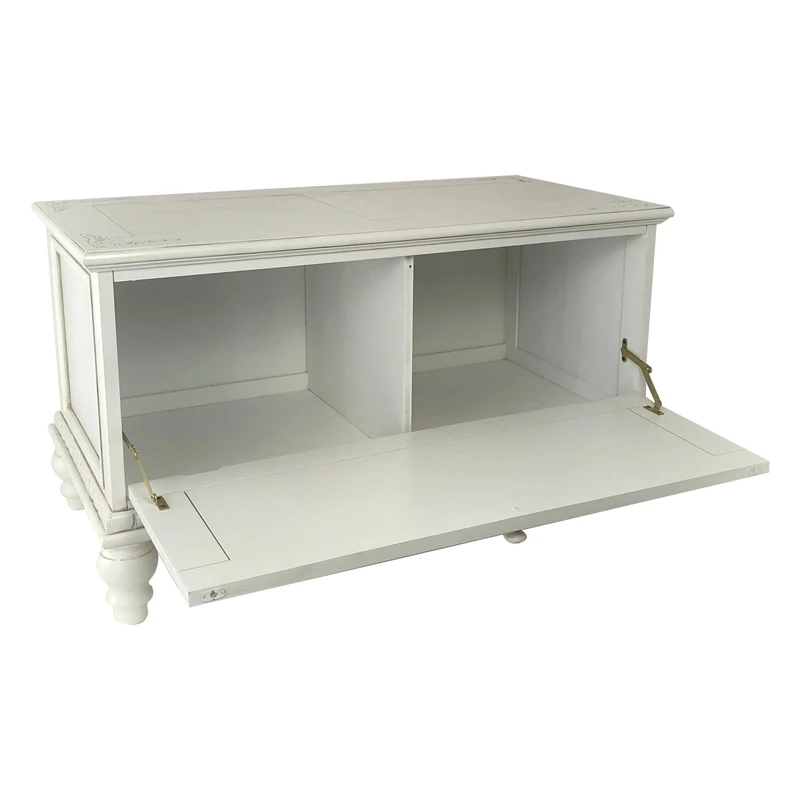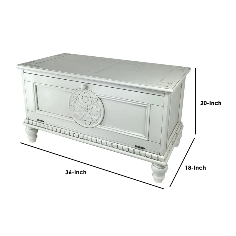 Quality craftsmanship meets exquisite scrolled details with this Accent Chest. Incorporated with floral carved design and drop down door storage, it is constructed sturdily from birchwood frame for prolonged durability.