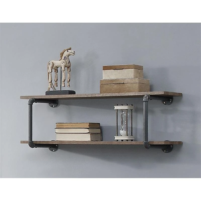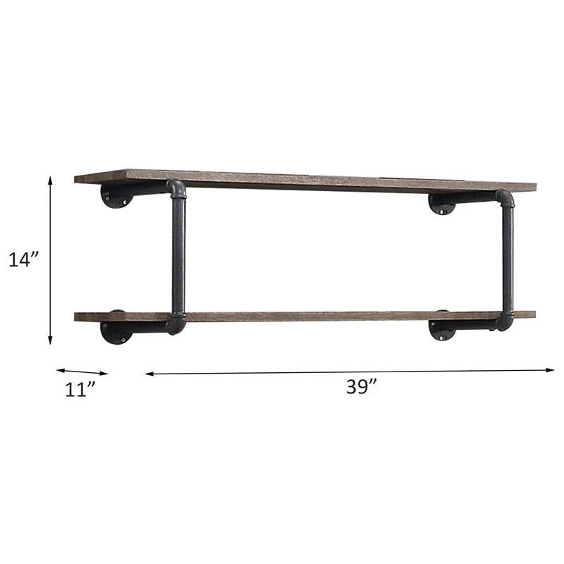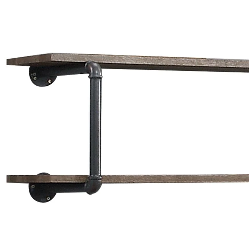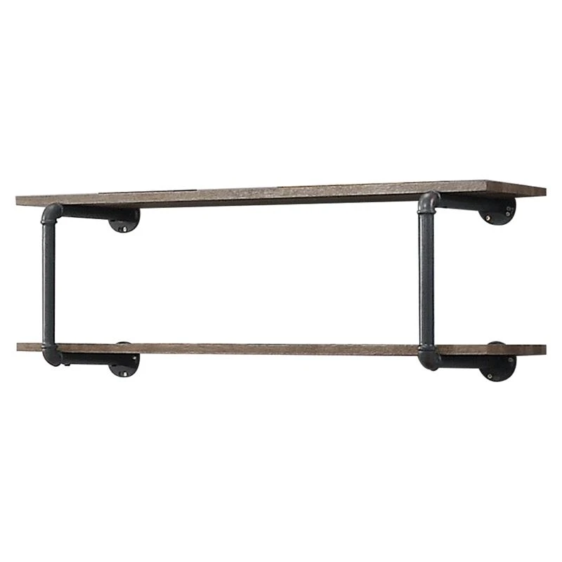 Turn your empty wall into a stylish storage space that perfectly reflects your style statement. Wooden shelves paired with metal pipe frame creates great-looking designs full of factory-chic flair. Industrial pipeline celebrates edgy aesthetic that elevates the drama and characteristics in space. Two-tier shelving system provides a great place to show off your things. Instantly increase your home’s functionality and appeal with Brantley Wall Rack.