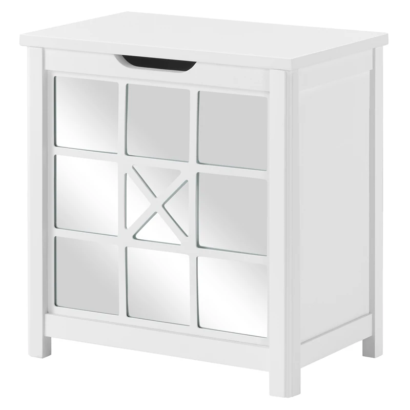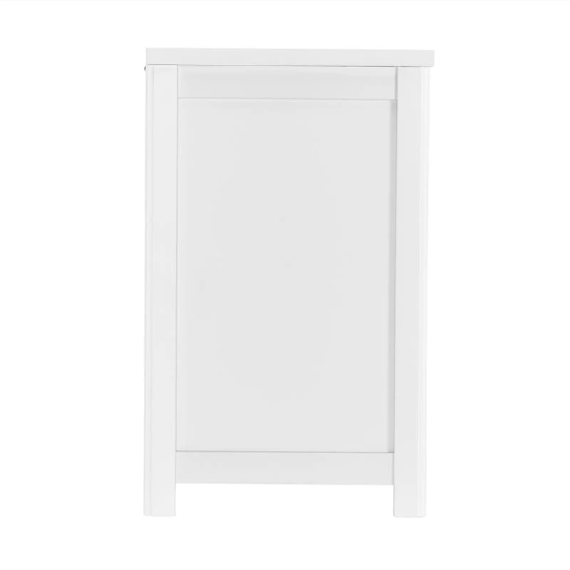 Bring style and function to your bathroom with this collection. Distinctive styling and gridwork details are designed to complement any décor. Wood construction with a painted white finish, this piece works with most aesthetics. This versatile piece can be used in a bedroom, bathroom, mudroom or laundry room. Features a hinged lid that lifts and stays open, so you can easily access toys, towels, and anything else stashed inside.