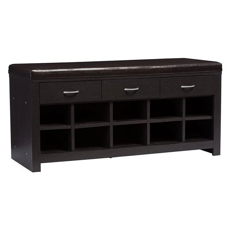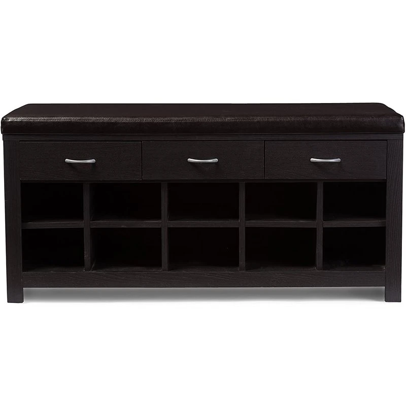 You can’t ask for a redo when it comes to first impressions. That’s why preserving the integrity of a home’s entryway is so important. But with space often at a premium, you want fashion and functionality. No need to sacrifice either one. Our Espresso Entryway Bench boasts great looks and strong storage capabilities. Underneath its foam-padded, brown faux-leather seat are 10 shoe-storage cubbies plus three drawers for holding such close-to-the-door essentials as keys, umbrellas and pet leashes.