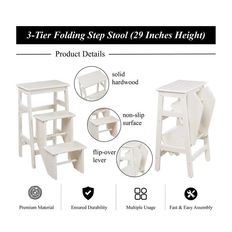 - Foldable design makes the stool easy to store and convenient space saver
