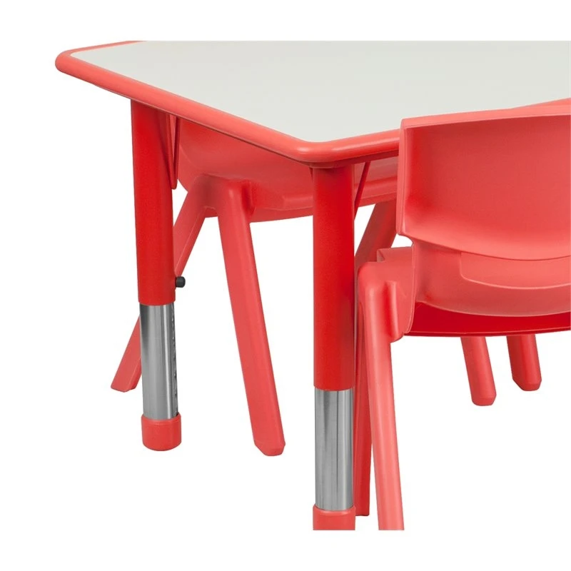 This table set is excellent for early childhood development. Primary colors make learning and play time exciting when several colors are arranged in the classroom. This durable table features a smooth Gray table top with safety rounded plastic edges and steel welding underneath along with adjustable steel legs that is sure to last throughout the years. The chair has been properly designed to fit young children to develop proper sitting habits that will last a lifetime.