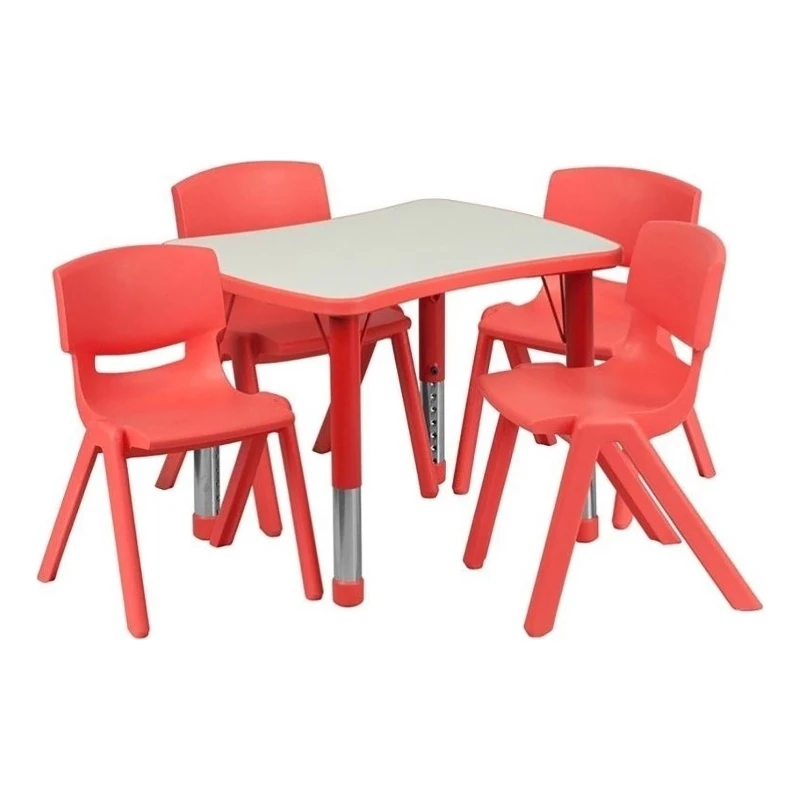 - Includes 4 stackable school chairs and rectangle table