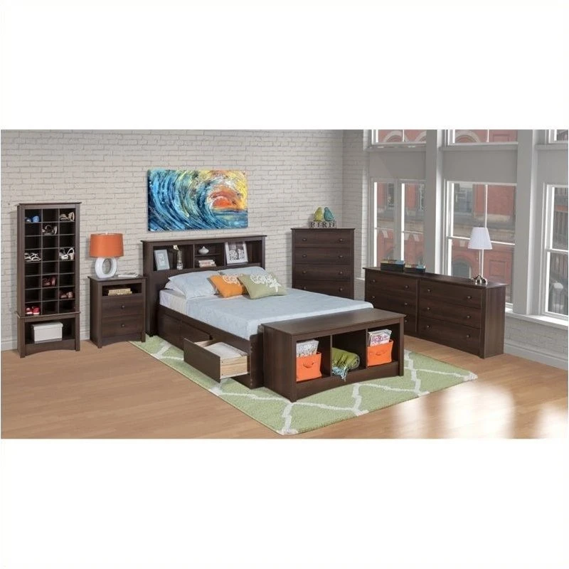 - Finished in durable rich “hide-the-scuffs” espresso laminate