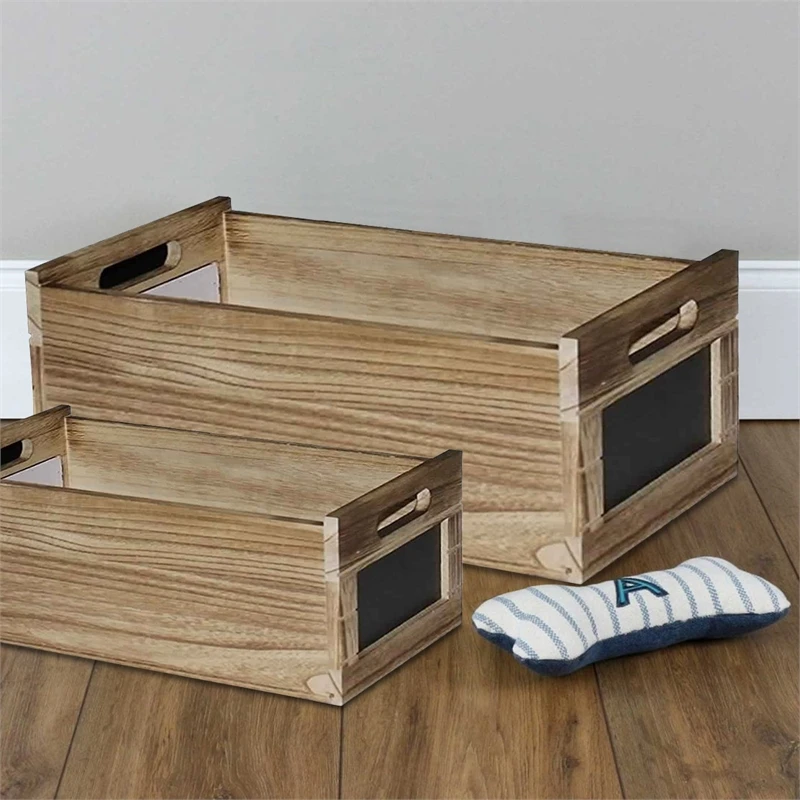 Add a farmhouse appeal to your buffet or display setting with the inclusion of this set of 4 wooden Storage Boxes, available in 4 assorted sizes. Showcases natural wood grain details, It features a chalkboard on its side panels for easy labeling and identification of your food or other items while the cutout on each side works as handle so that can easily relocate wherever you want.