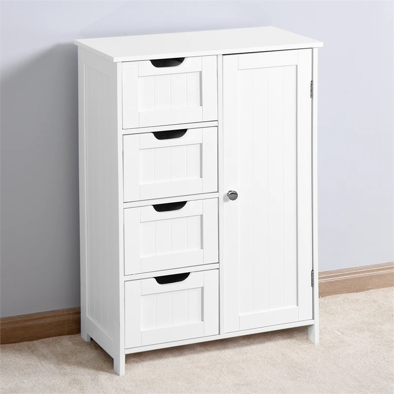 This storage cabinet will be the perfect choice for you if you are looking for something to organize your messy items. With its simple but elegant appearance, this item can perfectly match your room. 4 drawers and 1 cupboard to meet your different needs of storage. Coated with varnish, the surface of this item is glossy and smooth. This item is not only just a piece of furniture, but is also a great décor for your home.