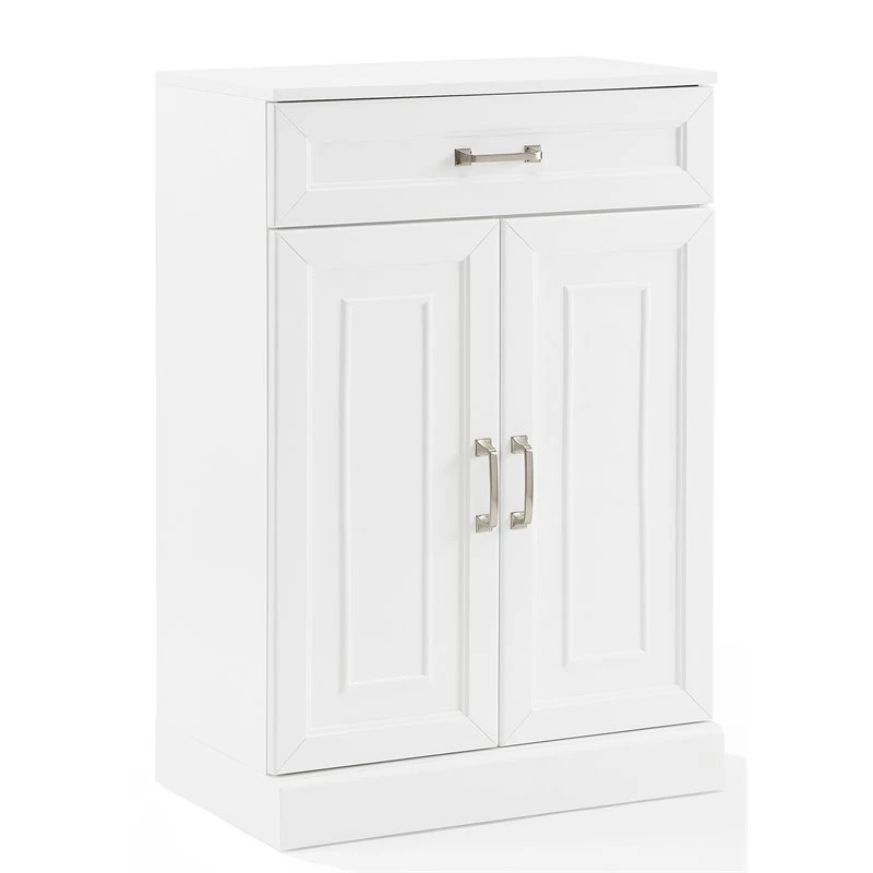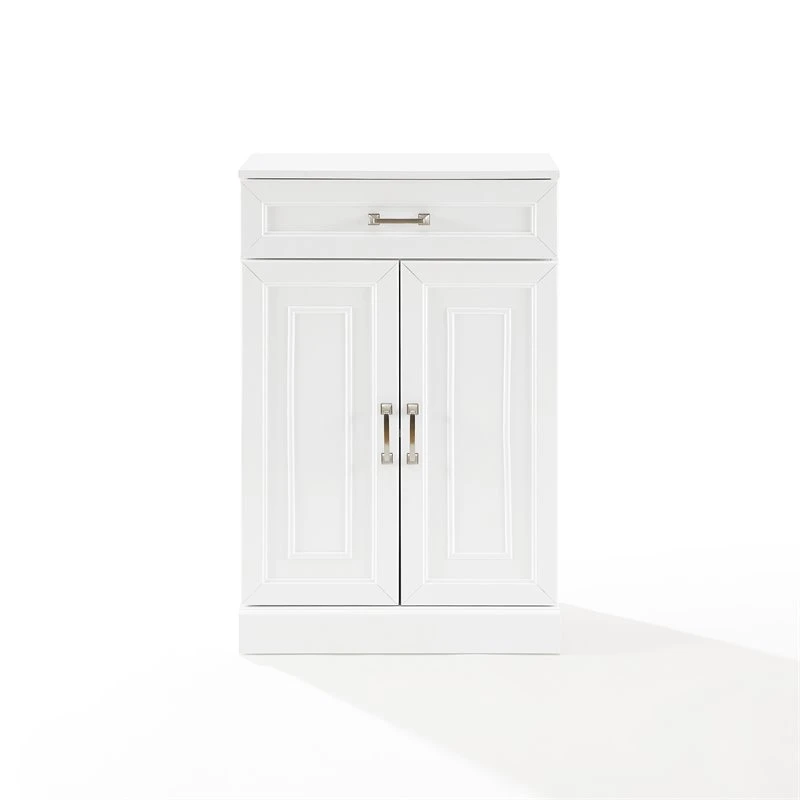 The Stanton Storage Cabinet combines classic styling with the versatility of modular design. Featuring an adjustable shelf plus a full-extension drawer, this cabinet is great for organizing smaller spaces. Panel doors on the cabinet keep everyday items out of sight, while the modularity of the Stanton Storage Cabinet allows it to mix with other items in the collection for customizable larger-scale storage.
