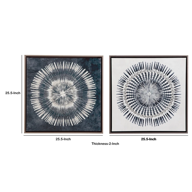 Provide a subtle charm to your existing decor setting by bringing in this contemporary style set of 2 wall art, featuring rectangular encasing and circular orientation print on gallery wrapped canvas. Incorporated with saw tooth hanger for easy installation, it will enhance the overall aesthetics of your place.
