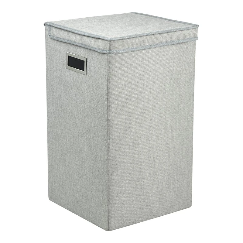 - This contemporary hamper is designed with textured linen and keeps laundry organized in style