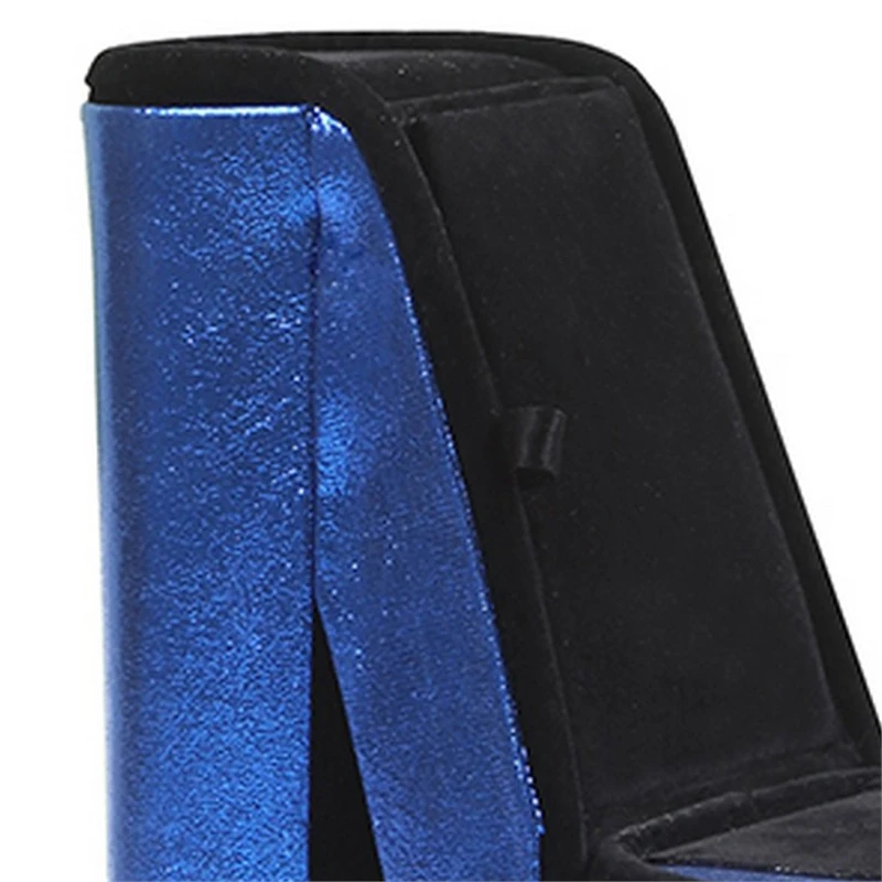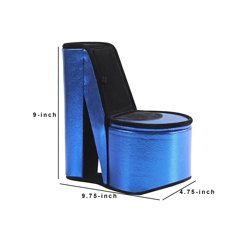 Add distinctive appeal to your dressing area with this captivating High Heel Shoe Jewelry Box. Upholstered in blue velvet fabric with black borders, it comes with two mounted hooks for the jewelry display. The hidden seat storage offers space to keep your valuables tucked away safely.