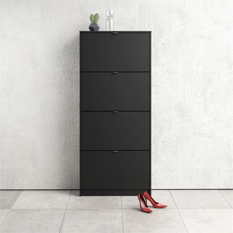 - 4 Drawer Shoe Cabinet in Black Matte with 2 Layers x 1