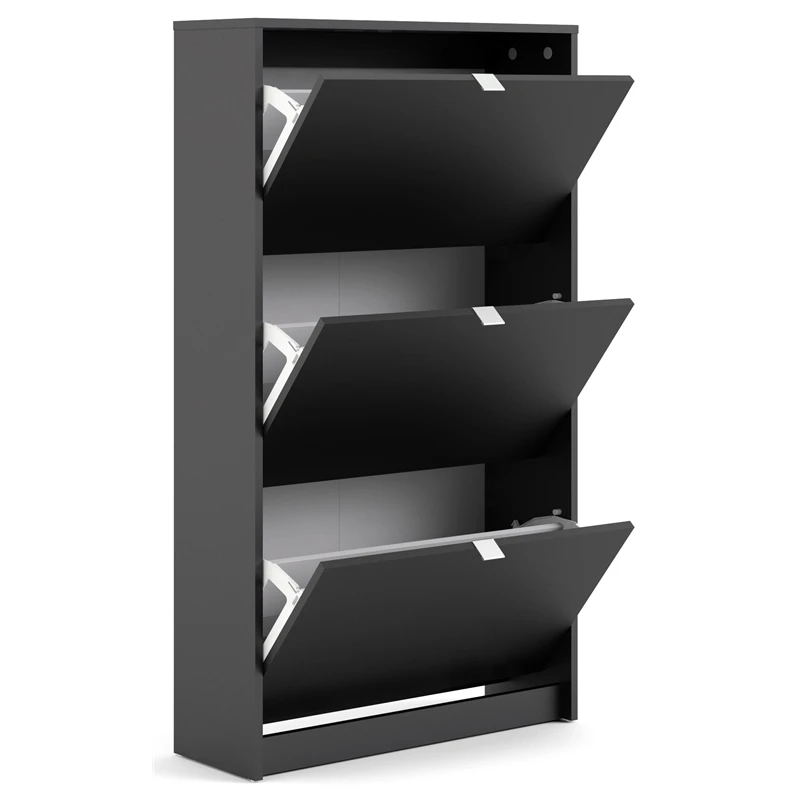 3 Drawer Shoe Cabinet in Black Matte with 2 Layers