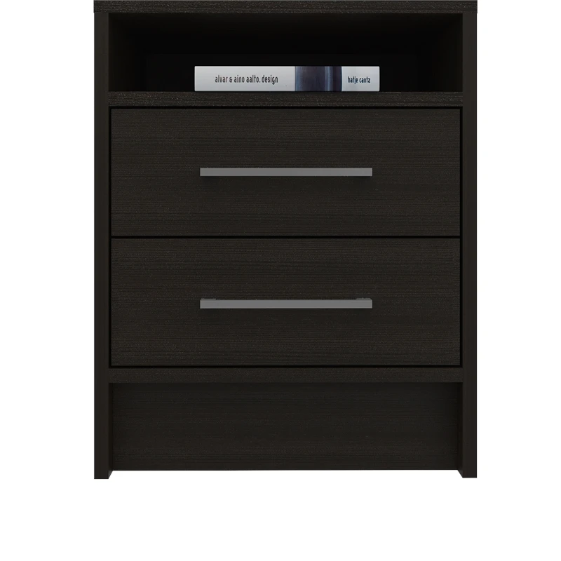 The Home Square Black Wengue Contemporary Engineered Wood Eter Nightstand is a versatile piece that will compliment your bedroom or living room perfectly, giving your space a fresh look that combines modern design and a sleek style. The End Table comes with 2 drawers with metal handles and one easy to access open compartment for your books or mobile devices.