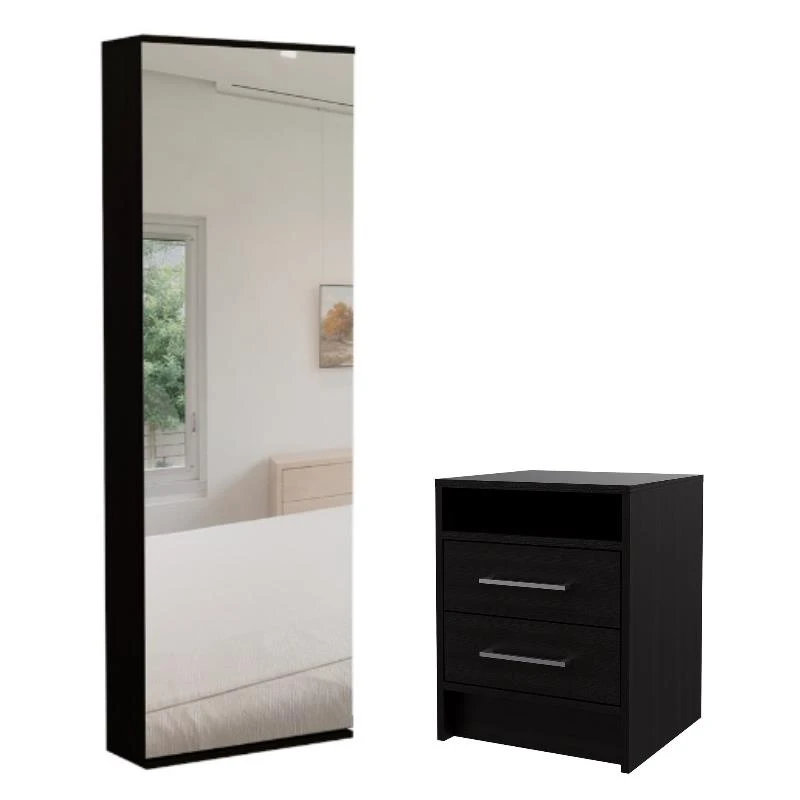 - Tuhome Black Wengue Modern Engineered Wood LETO Mounted Shoe Rack with Mirror x 1