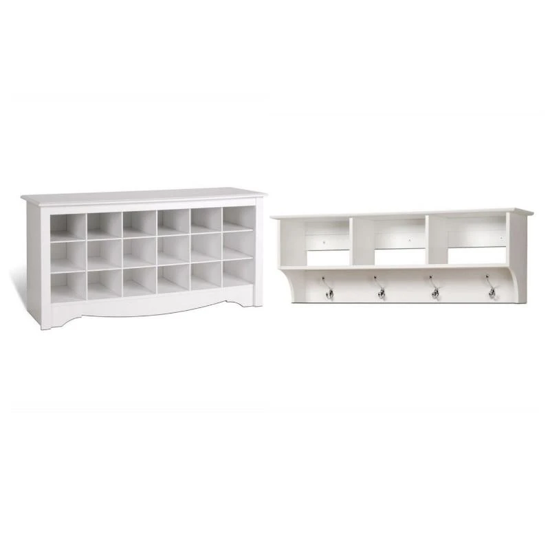 White Cubbie Shelf Wall Coat Rack for Entryway