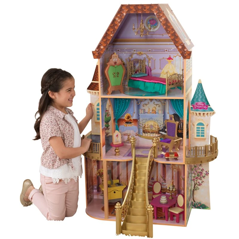 Based on the world of Disney’s Beauty and the Beast, children can revisit the fun and adventure of their favorite characters with the Belle Enchanted Dollhouse by KidKraft. Standing nearly four feet tall with three levels, four rooms and two balconies, this is dollhouse truly captures the magic of Disney with 13 accessory pieces. A grand golden staircase delivers your dolls to the second floor, where the Ottoman and Enchanted Rose reside. A bendable Lumiere figure graces the hand-painted dining table with chairs downstairs, while upstairs Belle’s bedroom is complete with her famous yellow gown and Wardrobe. This beautiful recreation is constructed from high-quality wood and plastic products to ensure years of fun with 12-inch dolls.