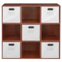 Niche Cubo Storage Set – 9 Cubes And 5 Canvas Bins- Cherry/White