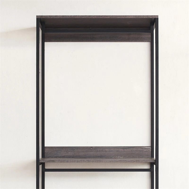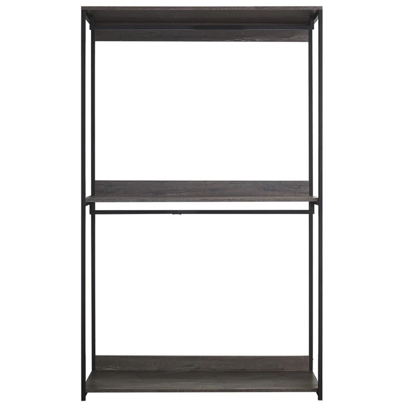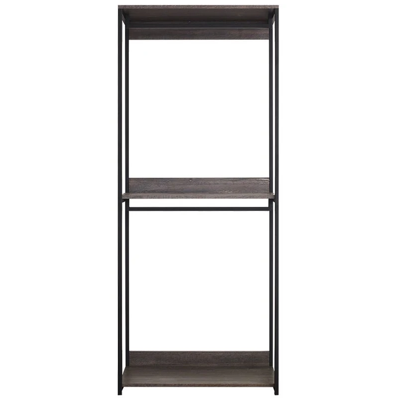 Configure your closet in the way that suits you best with this walk-in closet organizer with one shelf. Easily fold and stack jeans or use to store purses. A weathered wood appearance with a black metal frame brings a touch of farmhouse industrial style.