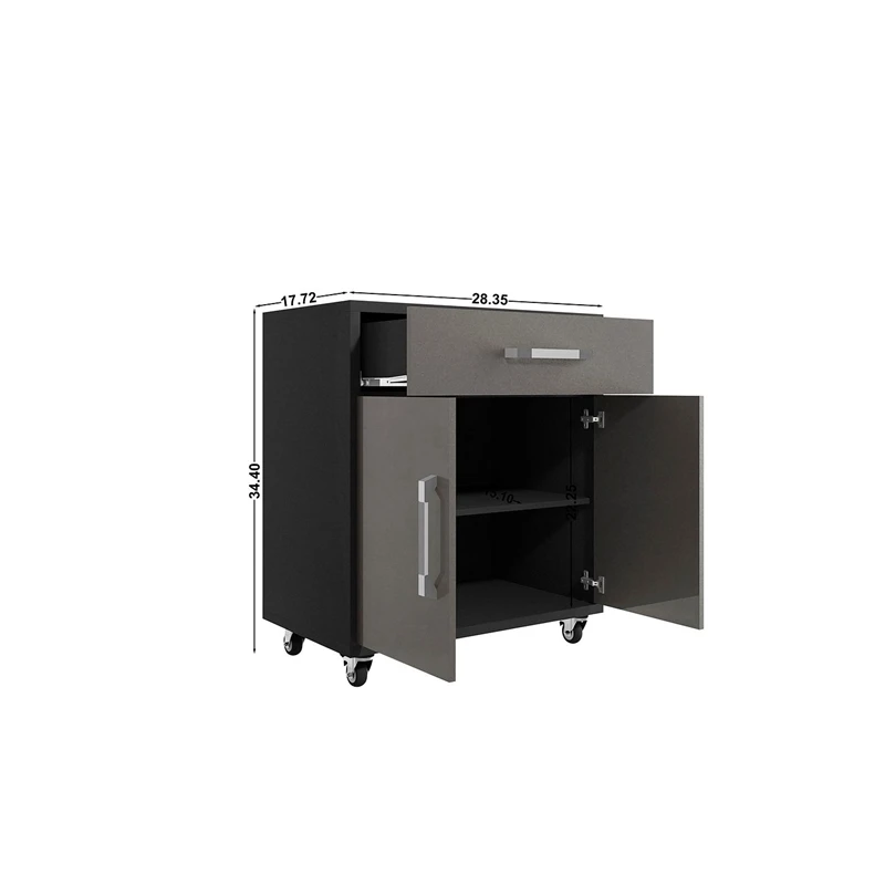 It is easy to get overwhelmed with garage clutter, from tools and lawn maintenance to holiday decorations, it is common for the garage to be a bit chaotic! The Eiffel Mobile Garage Cabinet is your solution to garage space bliss. This modern and sleek cabinet offers plenty of storage space with one drawer and two shelving spaces within the cabinet space. The soft close doors with simplistic Gray pull handles, keep all the items hidden away. The Eiffel features 4 easy rolling caster wheels to rearrange as needed. The collection’s array of classic to bold colors, you’re sure to find the perfect option to fit your unique home!