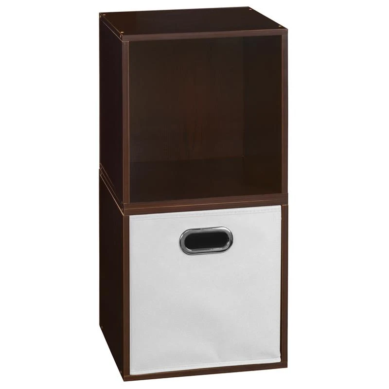 Let your creativity run wild with Cubo! This innovative set of 2 storage cubes by Niche are designed to fasten together in any direction! Connect them in any way you like. In a row, in a pyramid, in a U or L shape or countless other configurations. Start small and add on later. Cubes connect to one another with spring pins, making it easy to customize and create a storage system just for you with a single cube to a set of 12 or more. Niche storage cubes are actually cubes! The Fabric Storage Bin measures 12 x 12 x 12, which integrates seamlessly into Niche Cubo storage cubes (interior dimensions 12 1/8″ x 12 1/8″ x 12 1/8″). There’s no “right” way to use them because all sides measure the same! Who ever said all cubes had to face the front like a bookcase? Cubo storage cubes can attach together in any direction, which opens up a myriad of new design possibilities. Turn one to the right, turn another to the left. Keep one facing front and still another facing the back. Perfect to clean up clutter in closets, entryways, laundry & storage rooms, as a bookcase, nightstand or media storage, in a classroom or children’s room-these cubes fit anywhere! Its rich dark Truffle finish shows subtle wood grain and is sure to please and coordinates with the rest of the Niche line. No tools LockDowel assembly allows pieces to simply snap together and lock into place for a sturdy, hassle-free build in less than 2 minutes. No more searching for the right size screwdriver or dropping tiny screws. Just snap into place and go. Less hardware and fewer small parts means less plastic packaging and less waste. Arrange and rearrange the White Foldable Fabric Bin for a fresh, new custom look whenever you like!