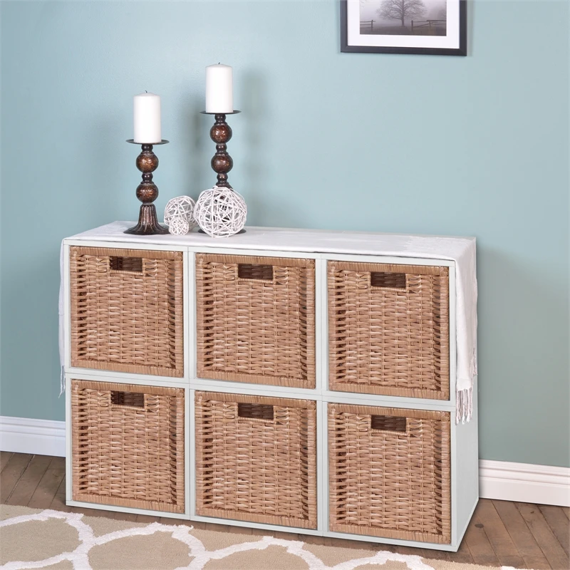 Let your creativity run wild with Cubo! This innovative set of 6 storage cubes by Niche are designed to fasten together in any direction! Connect them in any way you like. In a row, in a pyramid, in a U or L shape or countless other configurations. Start small and add on later. Cubes connect to one another with spring pins, making it easy to customize and create a storage system just for you with a single cube to a set of 12 or more. Niche storage cubes are actually cubes! The Wicker Storage Bins measures 12 x 12 x 12, which integrate seamlessly into Niche Cubo storage cubes (interior dimensions 12 1/8″ x 12 1/8″ x 12 1/8″). There’s no “right” way to use them because all sides measure the same! Who ever said all cubes had to face the front like a bookcase? Cubo storage cubes can attach together in any direction, which opens up a myriad of new design possibilities. Turn one to the right, turn another to the left. Keep one facing front and still another facing the back. Perfect to clean up clutter in closets, entryways, laundry & storage rooms, as a bookcase, nightstand or media storage, in a classroom or children’s room-these cubes fit anywhere! Its classic White finish shows subtle wood grain and is sure to please and coordinates with the rest of the Niche line. No tools LockDowel assembly allows pieces to simply snap together and lock into place for a sturdy, hassle-free build in less than 2 minutes. No more searching for the right size screwdriver or dropping tiny screws. Just snap into place and go. Less hardware and fewer small parts means less plastic packaging and less waste. Add, arrange or move around the Foldable Wicker Baskets for a fresh, new custom look whenever you like!