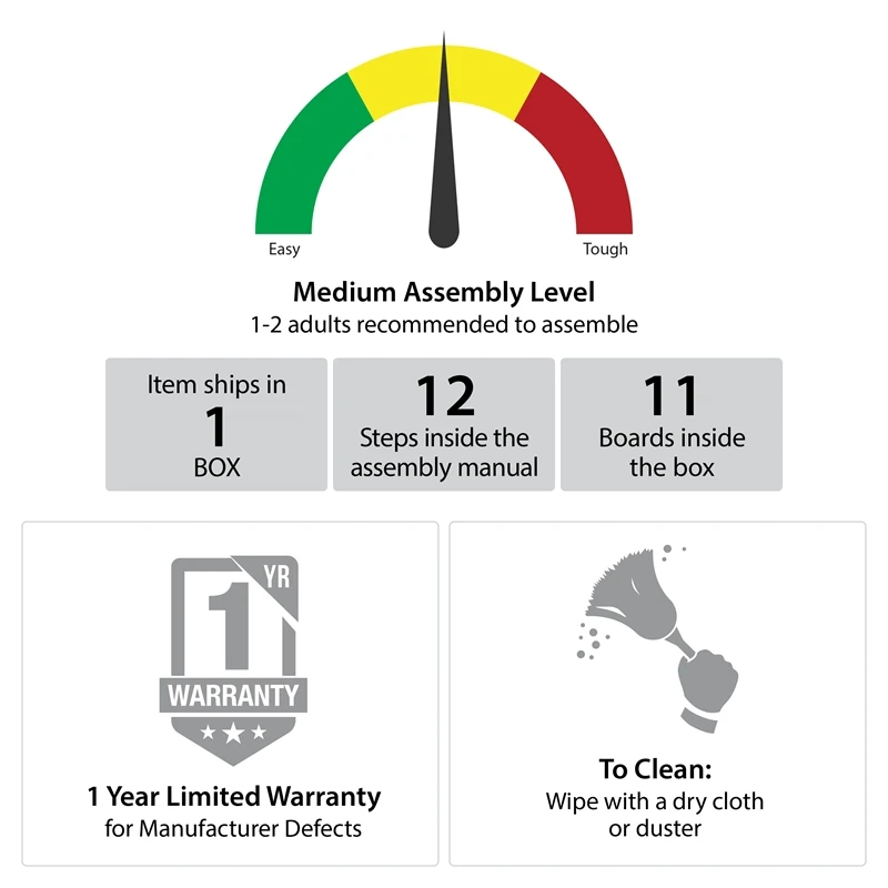 - Made of laminated particleboard, the neutral woodgrain finish can be added to any style and décor without breaking the bank
