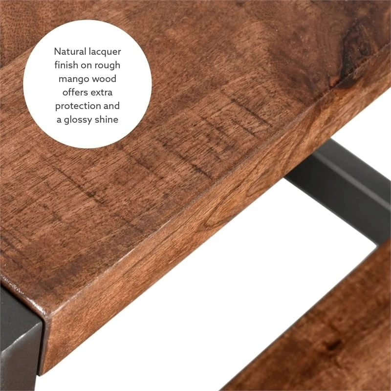 - Natural lacquer finish on rough mango wood offers extra protection and a glossy shine