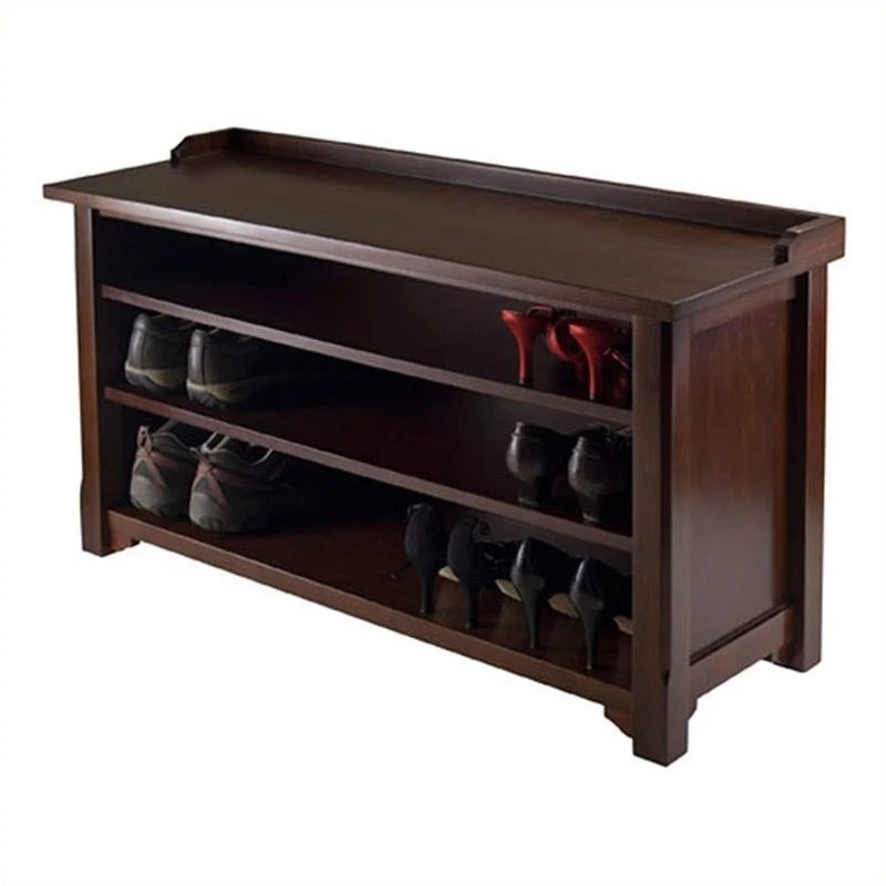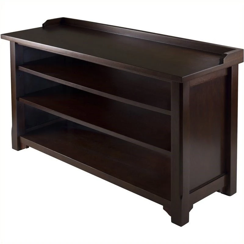 Bring luxury and organization to your shoe collection with this stunning storage. Ingeniously designed to hold all the shoes in your closet or mudroom, it’s also great for a front entryway. A warm brown finish and simple, classic details complete its elegant look.