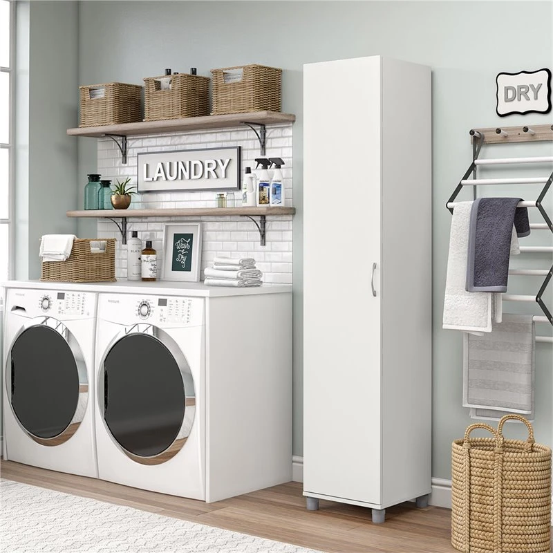 - The Pemberly Row 16” Utility Storage Cabinet adds extra storage to any room