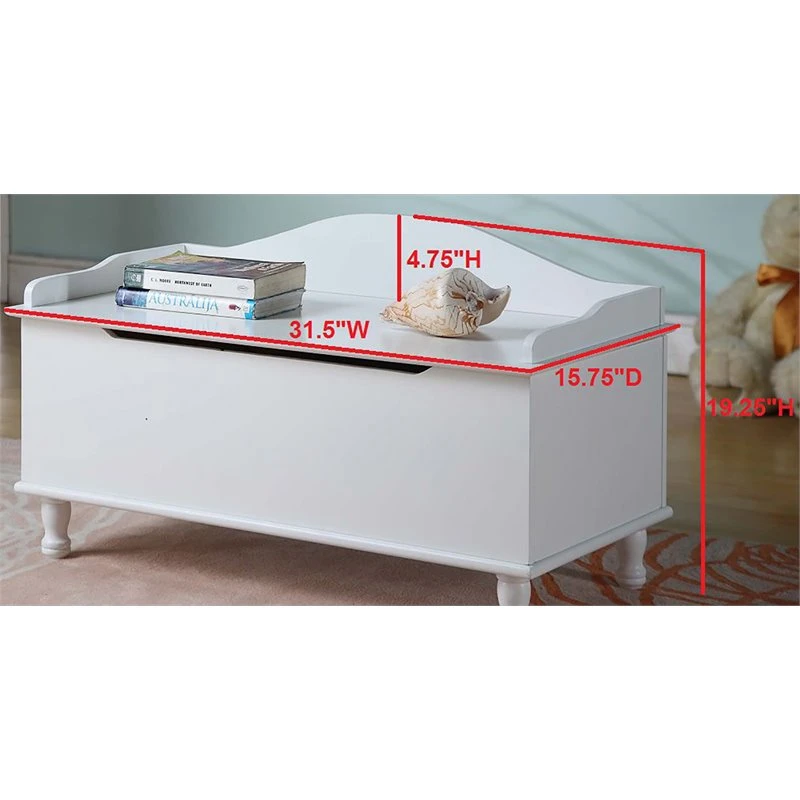 Marie White Wood Contemporary Storage Bench. Add function and style to any room with the Marie Storage Bench. Featuring a locking hinged top that uncovers a lined storage area, the clean design will elevate your home interior to a whole new level. Crafted from solid wood and veneers for sturdiness and durability while the white finish adds a classic appeal. With ample storage space, the bench is great for storing blankets, gloves, scarves, or other objects while the thick solid wood turned legs add a distinct touch.