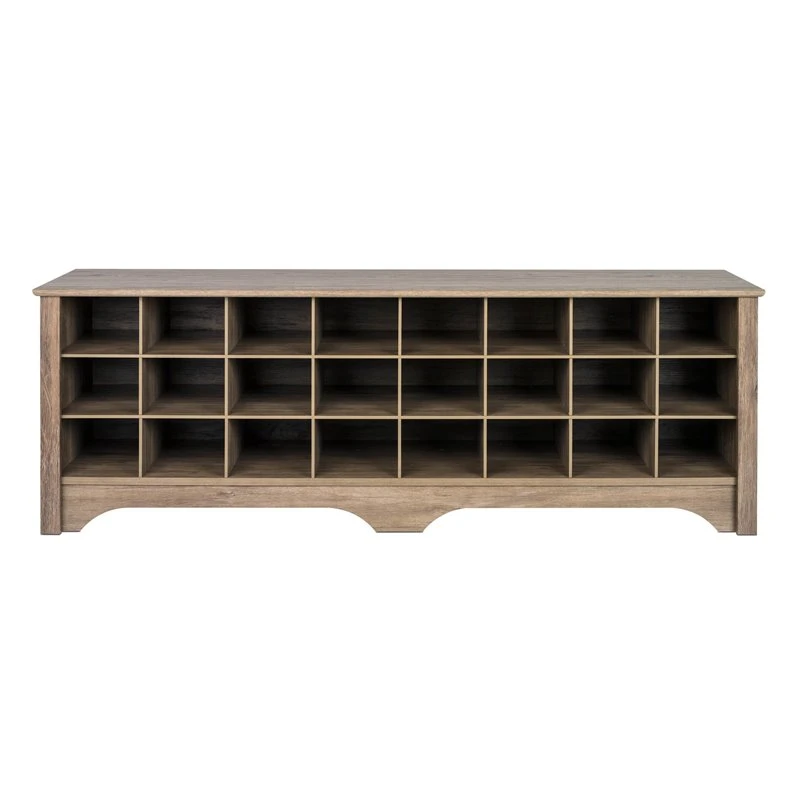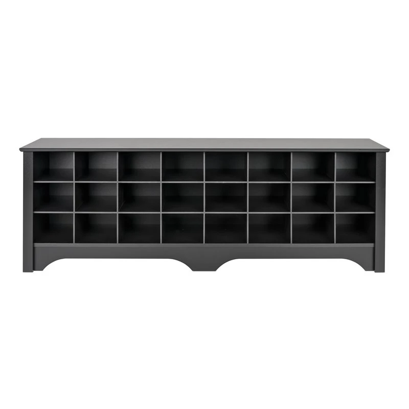 Store your shoes where you put them on with our Shoe Storage Cubbie Bench. Dual-purposed and versatile, this bench is a great addition to your foyer, mudroom, utility room or bedroom. Each of the 24 individual cubbies is spacious enough to hold a pair of size 13 men’s shoes, keeping them neatly stored and out of the way. It’s the perfect piece to keep your shoes organized.