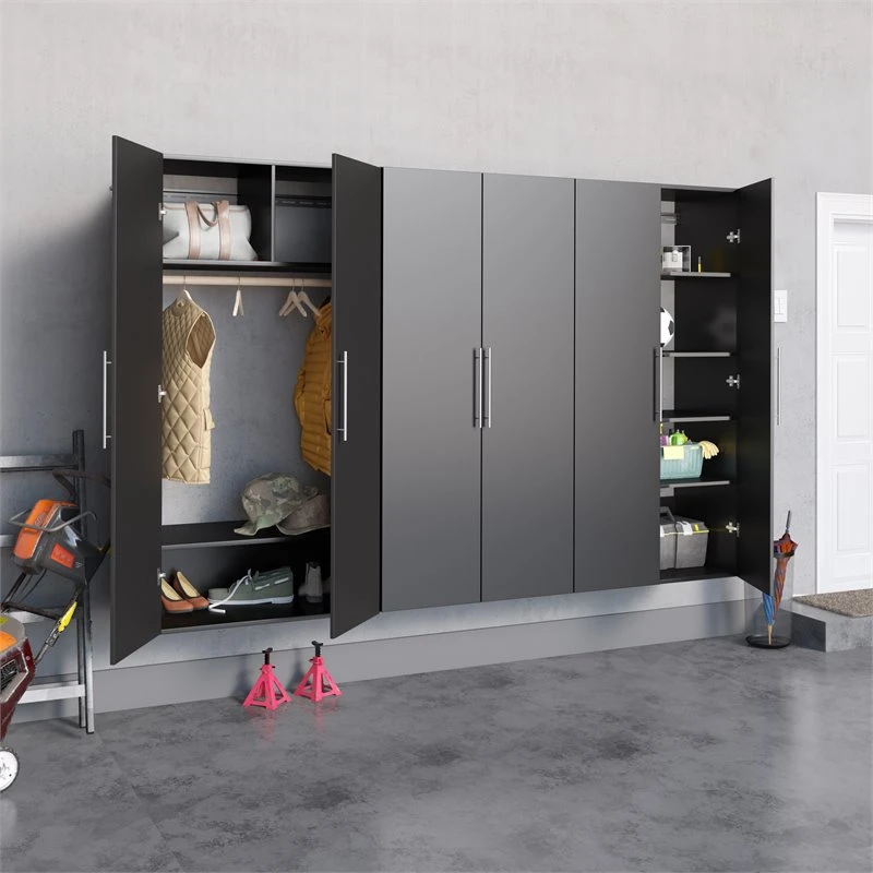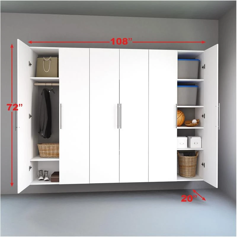 The Prepac HangUps Storage Cabinet Collection offers versatility for your ever changing storage needs in the garage, laundry room, office or workshop. The Cabinets mount securely to the wall with a heavy duty metal rail and hook system. The wall mounted feature ensures easy cleaning beneath the cabinets and protects your stored items from water & dirt. The HangUps Collection is constructed using laminated Engineered Wood and features metal handles and adjustable hinges. This product ships ready-to-assemble and includes all hanging rails and fastening bolts. Add other cabinets from our HangUps Collection to create a storage system to convert any cluttered room into an organized space.