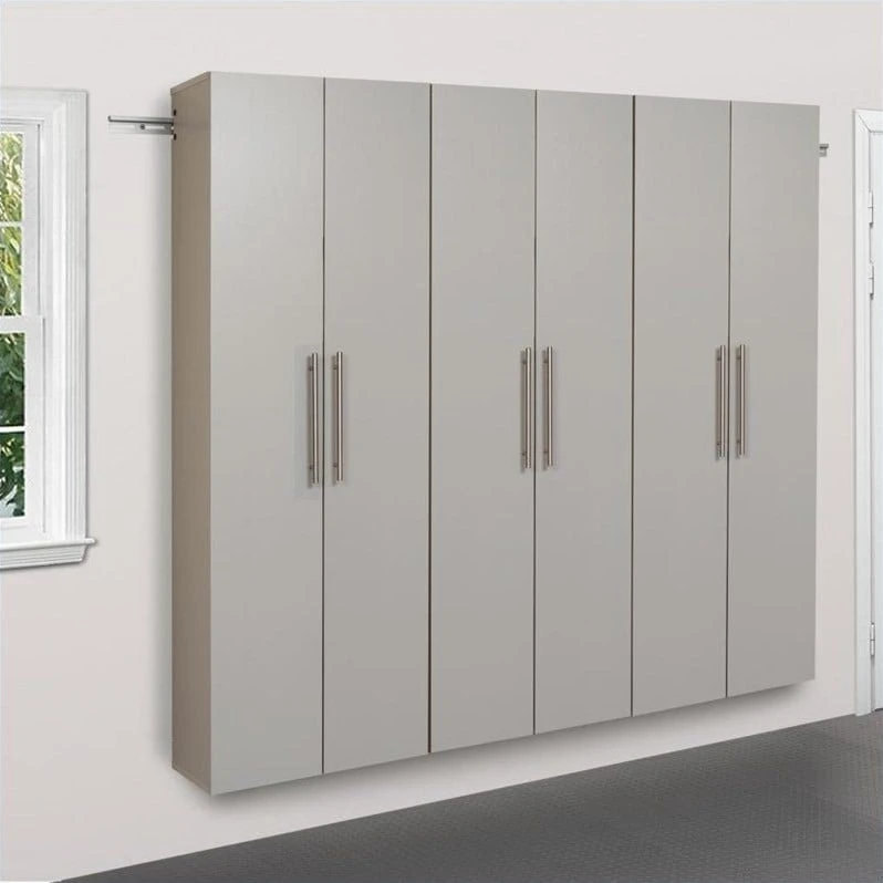 The HangUps storage cabinet collection offers versatility for your ever-changing storage needs in the garage, laundry room, office or workshop. The cabinets mount securely to the wall with a heavy-duty metal rail and hook system. The wall-mounted feature ensures easy cleaning beneath the cabinets and protects your stored items from water and dirt. The HangUps collection is constructed using laminated composite wood and features metal handles and adjustable hinges. This product ships ready-to-assemble and includes all hanging rails and fastening bolts. Add other cabinets from our HangUps collection to create a storage system to convert any cluttered room into an organized space.