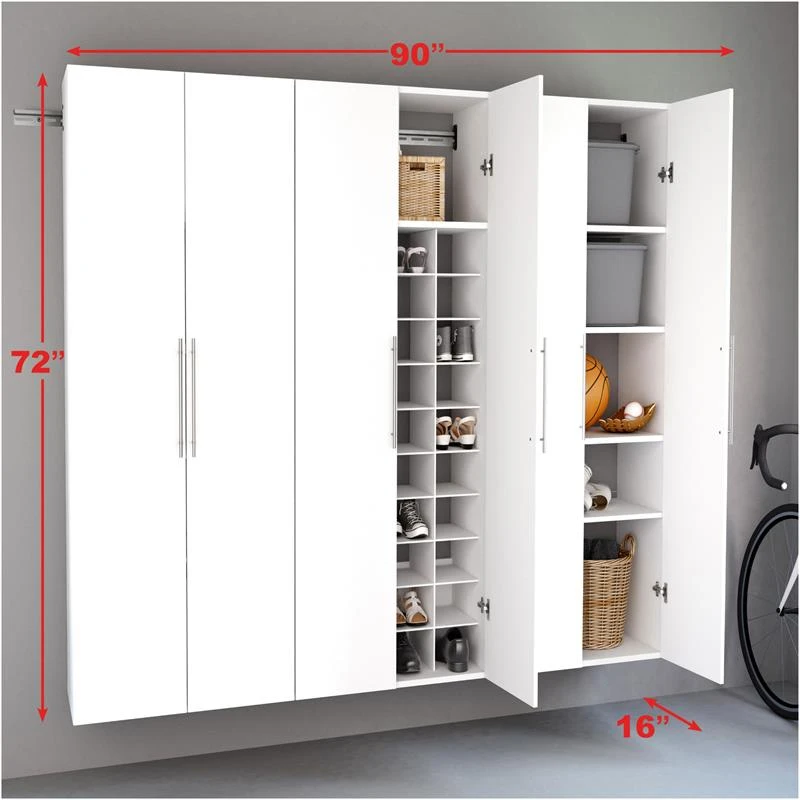 The Prepac Prepac HangUps Storage Cabinet Collection offers versatility for your ever changing storage needs in the garage, laundry room, office or workshop. The Cabinets mount securely to the wall with a heavy duty metal rail and hook system. The wall mounted feature ensures easy cleaning beneath the cabinets and protects your stored items from water & dirt. The HangUps Collection is constructed using laminated Engineered Wood and features metal handles and adjustable hinges. This product ships ready-to-assemble and includes all hanging rails and fastening bolts. Add other cabinets from our HangUps Collection to create a storage system to convert any cluttered room into an organized space.