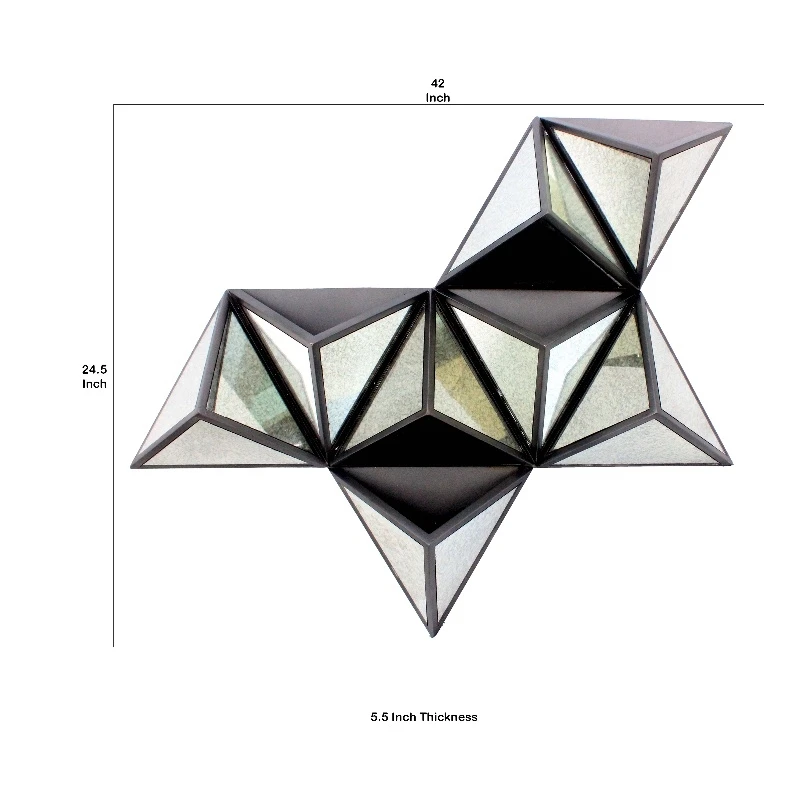 Modernize your home to the greatest extent with the inclusion of this magnificently styled and crafted artistic masterpiece. This wooden wall decor with triangular mirrors form a prison like structure making it ideal for mounting in you living room or bedroom.