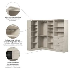 Bestar Versatile 97″ Walk-In Engineered Wood Closet Organizer In Linen White Oak