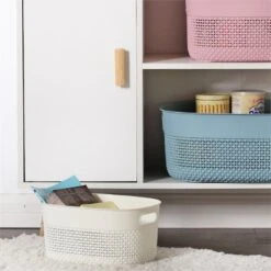 HANAMYA Stackable Storage Basket Organizer With Handle 20 Liter White (Set Of 4)