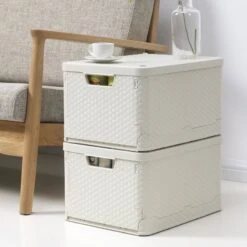 HANAMYA Lidded Storage Organizing Container 9 Liter In Off-White (Set Of 4)