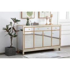 Elegant Decor Reflexion 60″ Metal And MDF Mirrored Credenza In Gold