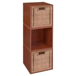 Niche Cubo Storage Set – 3 Cubes And 2 Wicker Baskets- Cherry/Natural
