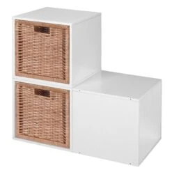 Niche Cubo Storage Set – 2 Cubes And 2 Wicker Baskets- White Wood Grain/Natural
