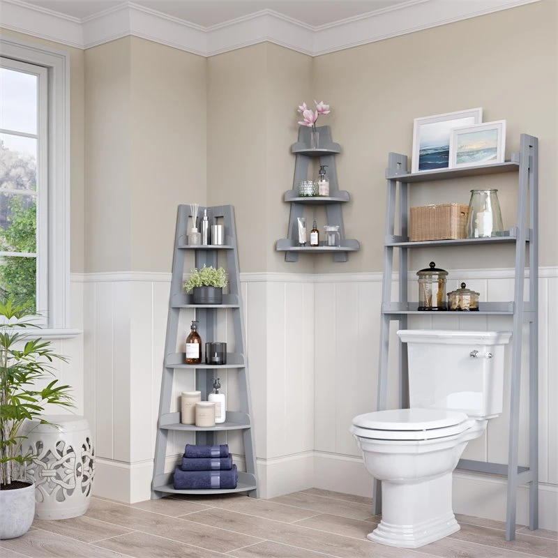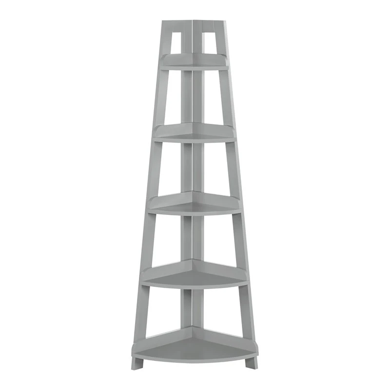 Store and display more with this classic RiverRidge 5-Tier Corner Ladder Shelf. Clean and simple ladder design makes this a seamless addition for any room layout or color scheme. Narrow corner ladder shelf maximizes storage and display space in small bathrooms, hallways or entryways. Additional dimensions: open shelf 1: 7-in. L x 9.75-in. W x 6.75-in. D, open shelf 2: 8.63-in. L x 12.13-in. W x 8.5-in. D x 10.38-in. H, open shelf 3: 9.75-in. L x 13.75-in. W x 9.5-in. D x 10.38-in. H, open shelf 4: 11.38-in. L x 16-in. W x 11-in. D x 10.38-in. H, open shelf 5: 13.38-in. L x 18.75-in. W x 13-in. D x 10.38-in. H