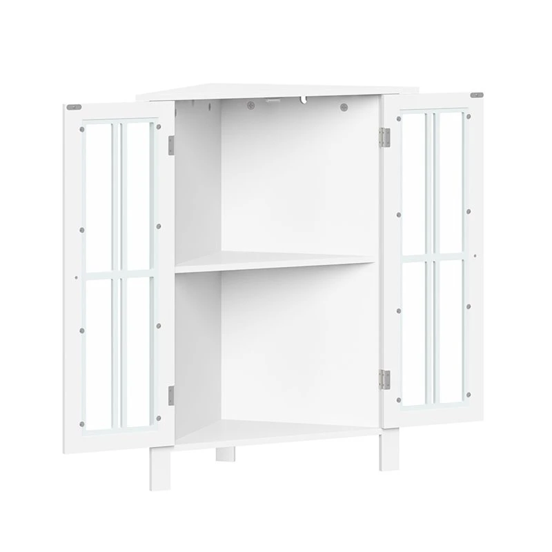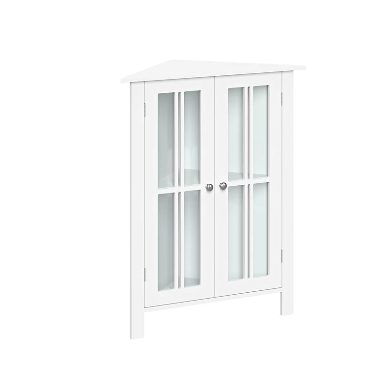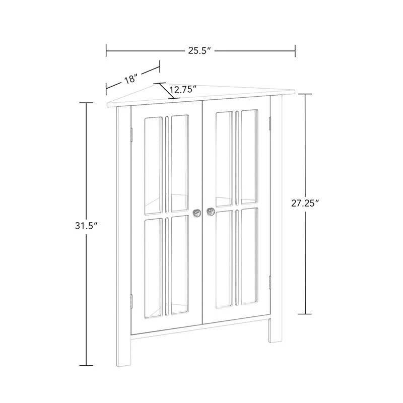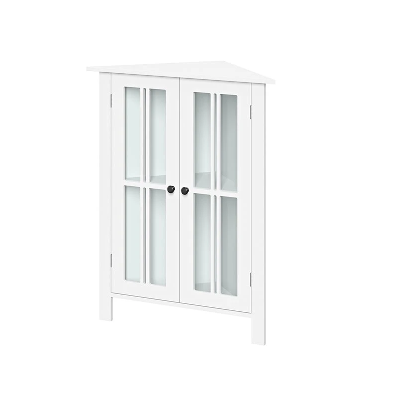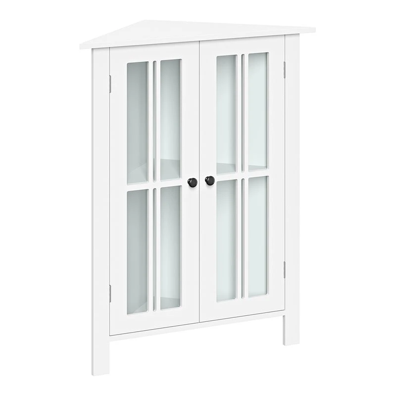 - Stylish two-door corner cabinet maximizes storage in tight spaces like bathrooms, laundry rooms, offices and more