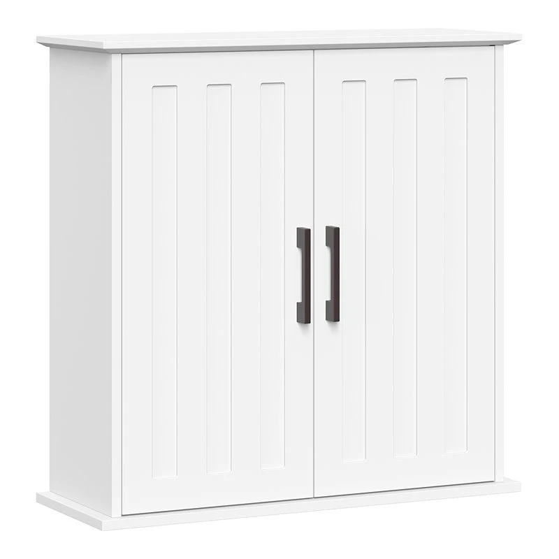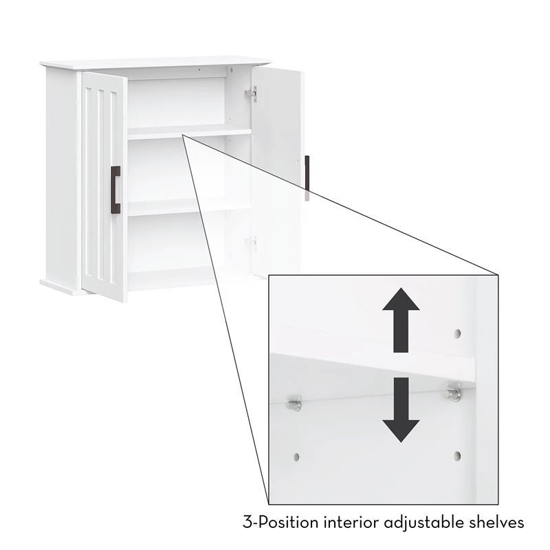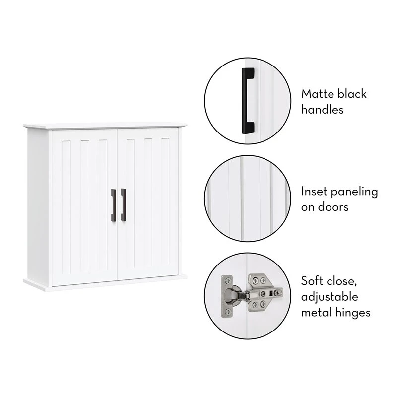 With a versatile design and classic white finish, this cabinet makes an ideal medicine cabinet in the bathroom or storage cabinet in any room of the home. Stow away extra toilet paper, wash cloths and other toiletries on the spacious adjustable shelves behind the cabinet doors. Matte black handles and vertical inset panels on the doors add a modern impression to your space while providing a fully concealed storage option. Adjustable, soft-close hinges prevent slamming and allow for evenly aligned doors. Includes assembly instructions and wall mounting hardware for quick and easy installation. Maximize storage space and complete the set with the additional Monroe Collection items.