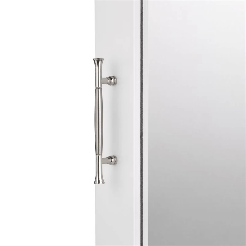 Featuring a smooth painted finish and two-tone, satin/mirror finish silver handle, this classically designed cabinet will make the perfect addition to your space. With its interior, 3-position adjustable shelf and two fixed shelves, this cabinet is the ideal place for storing toiletries, toothbrushes, medications, makeup supplies and other bathroom necessities. Soft close hinges protect the exterior mirror, while the top board features crown molding for a timeless, traditional style. Includes easy-to-follow assembly and wall-mounting instructions. Pair with any of the additional Somerset Collection items for a newly organized space.