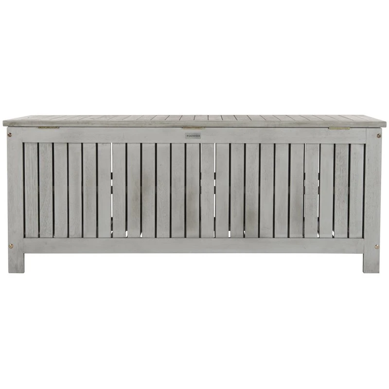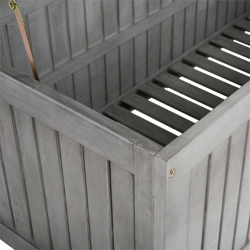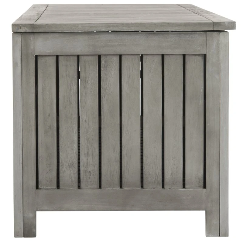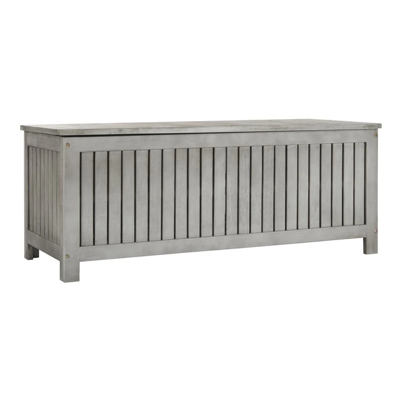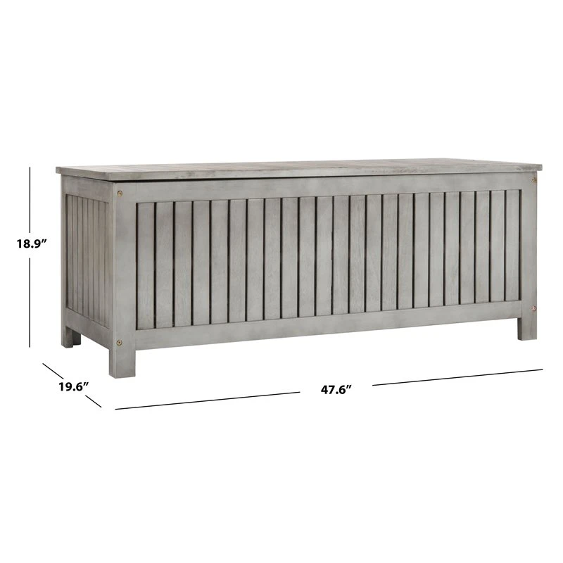 Inspired by a classic resort in North Carolina, this 47.63-inch cushion box brings charm and grace to any outdoor room. Designed for ample storage, its traditional grey wash finish and eucalyptus wood craftsmanship ensure it will be enjoyed for generations.