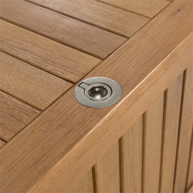 Inspired by a classic resort in North Carolina, this 47.63-inch cushion box brings charm and grace to any outdoor room. Designed for ample storage, its traditional teak finish and eucalyptus wood craftsmanship ensure it will be enjoyed for generations.
